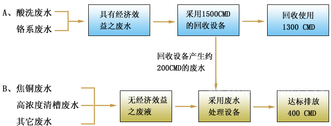 电镀综合排放废水回用系统工艺流程示意图如下: